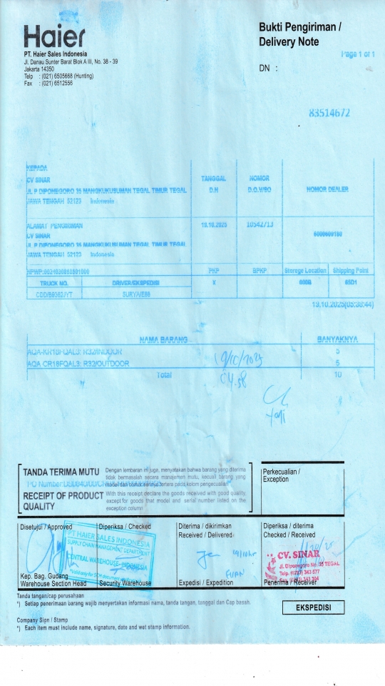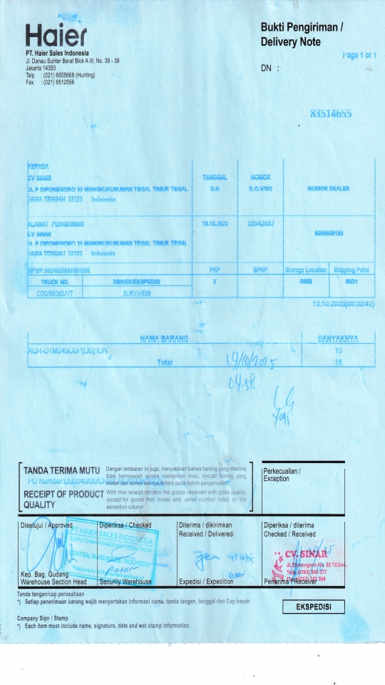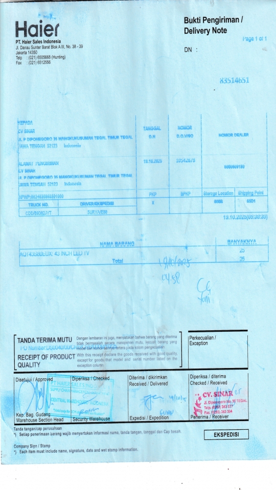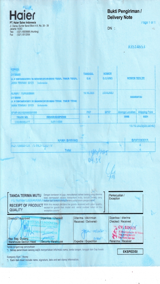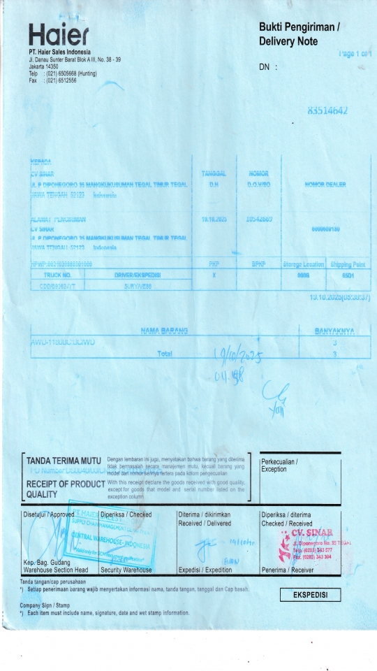 | Berangkat, Tiba, Bongkar | 2025-10-20, 2025-10-20, 2025-10-20 |
