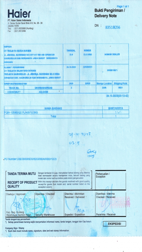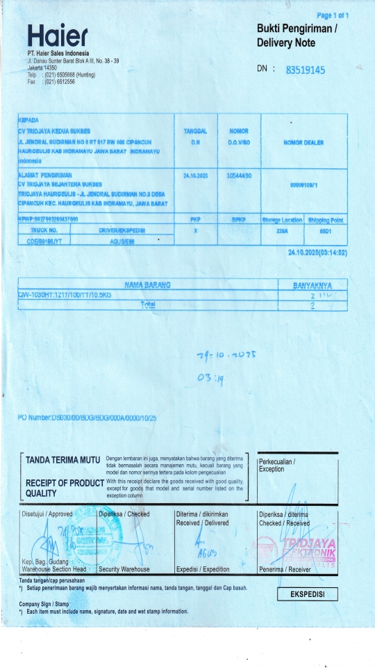 CV TRIDJAYA SEJAHTERA SUKSES TRIDJAYA HAURGEULIS - JL JENDRAL SUDIRMAN NO.8 DESA CIPANCUH KEC. HAURGEULIS KAB INDRAMAYU, JAWA BARAT Indramayu 45264 ID |