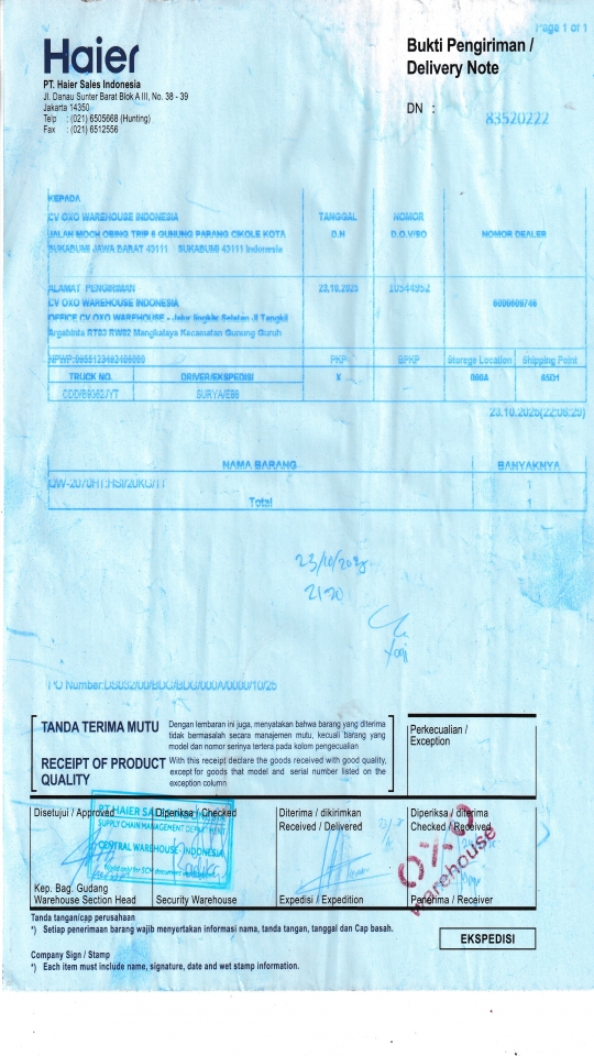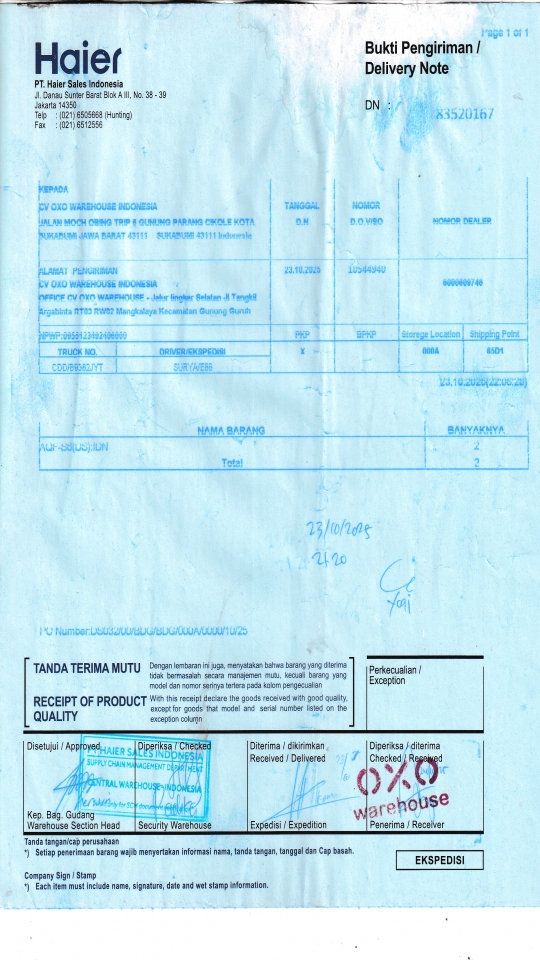 Penerima CV OXO WAREHOUSE INDONESIA