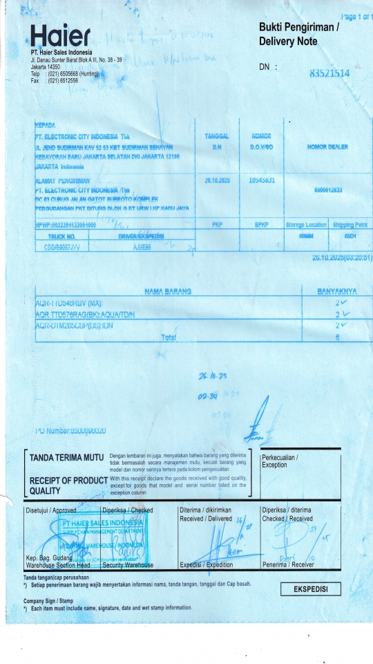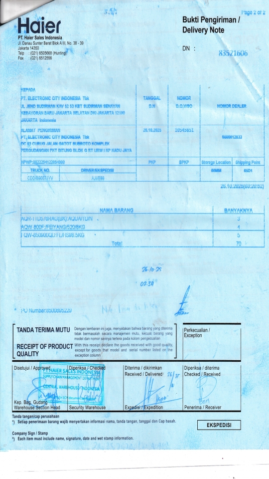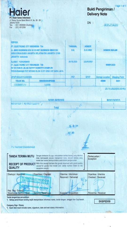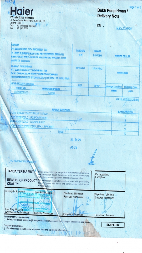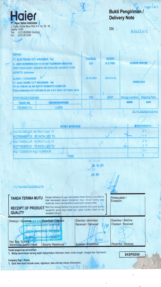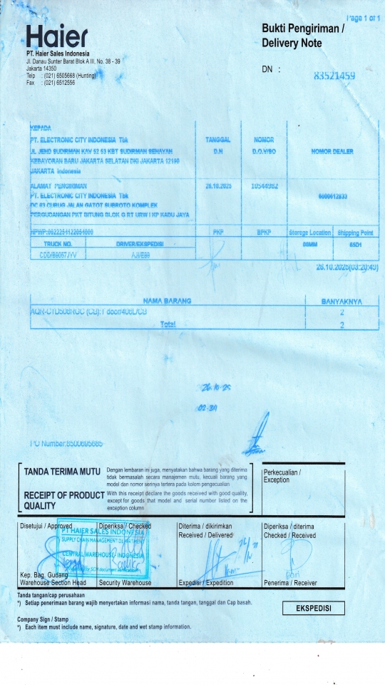 PT. ELECTRONIC CITY INDONESIA Tbk DC 03 CURUG JALAN GATOT SUBROTO KOMPLEK PERGUDANGAN PKT BITUNG BLOK G RT URW I KP KADU JAYA KEC CURUG TGR ID |