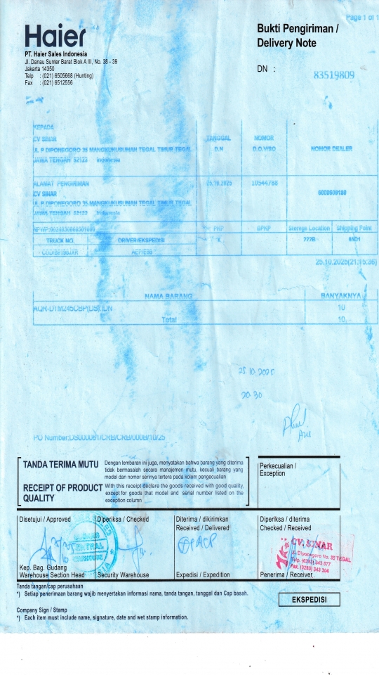 | Berangkat, Tiba, Bongkar | 2025-10-27, 2025-10-27, 2025-10-27 |