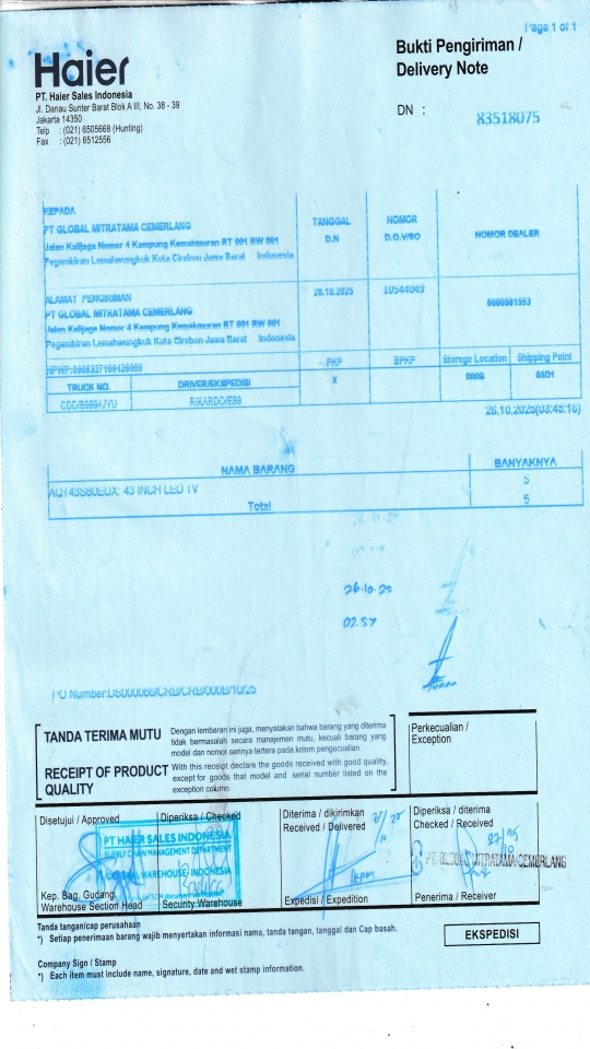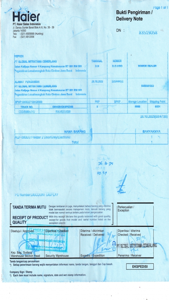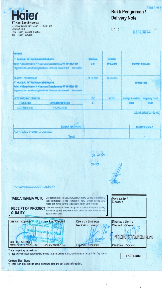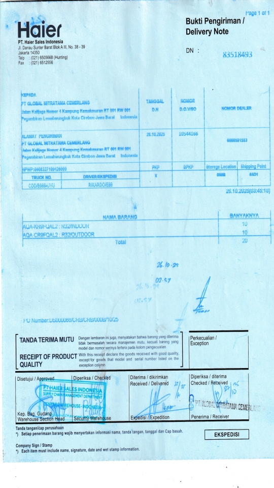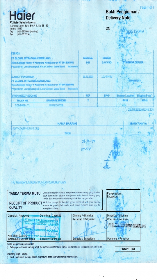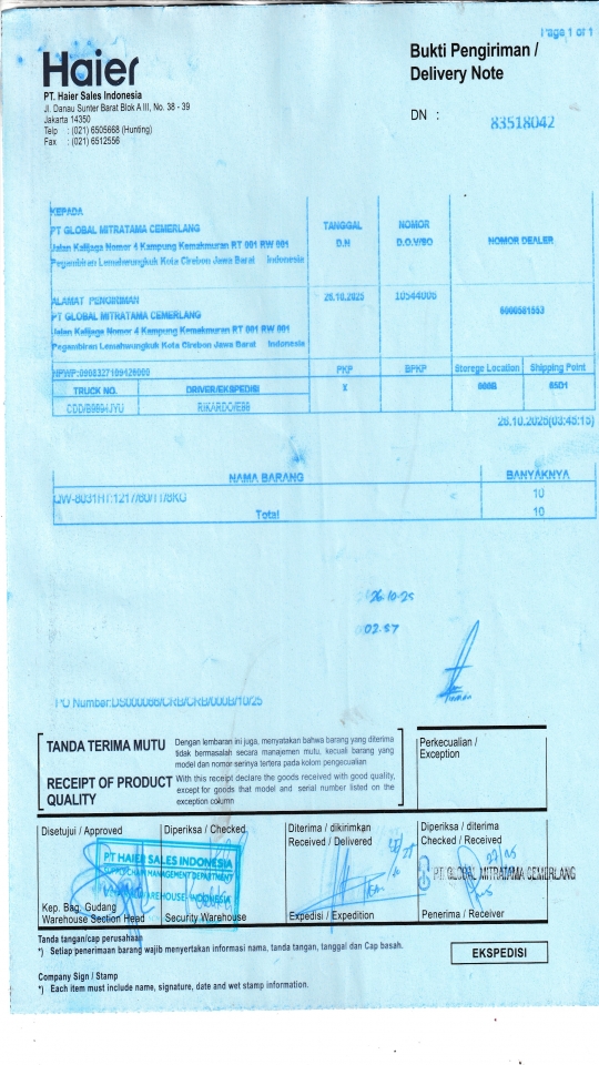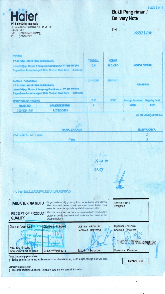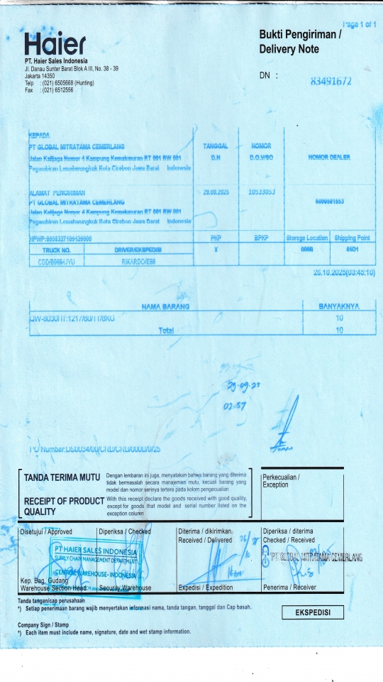 Berangkat, Tiba, Bongkar 2025-10-27, 2025-10-27, 2025-10-27