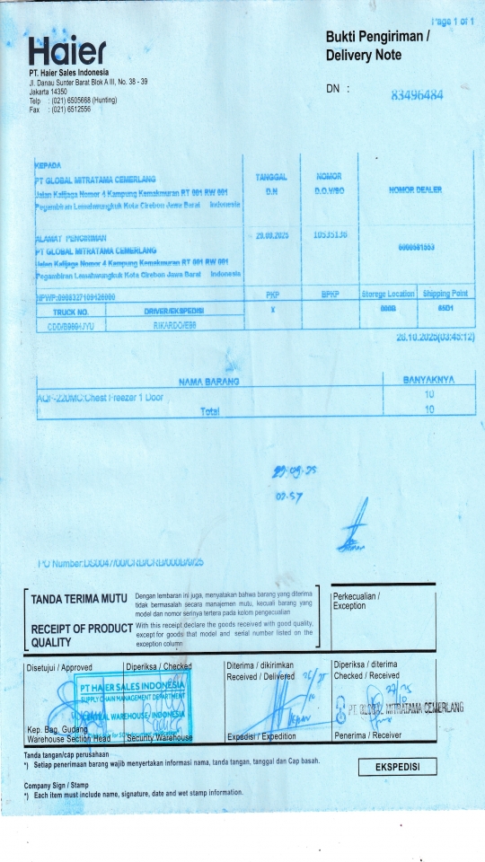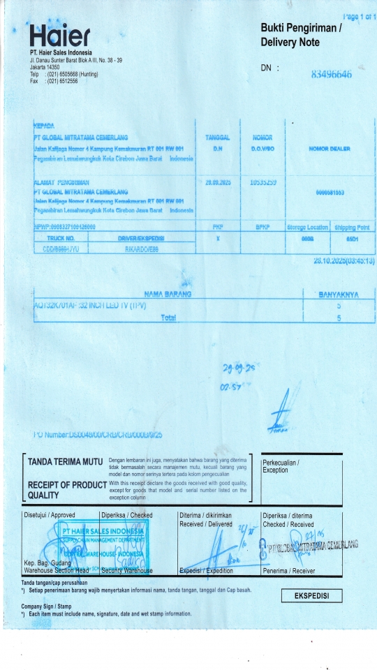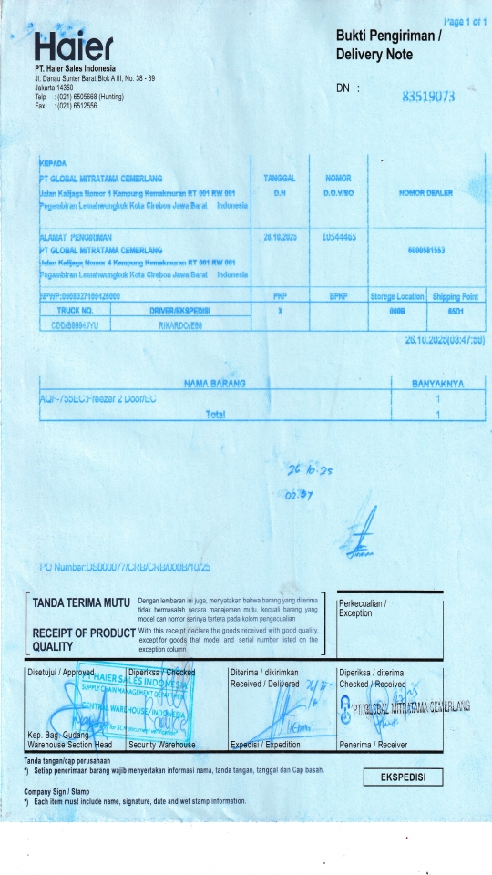 Penerima PT GLOBAL MITRATAMA CEMERLANG