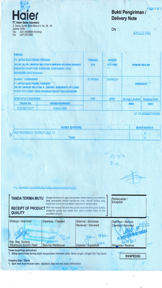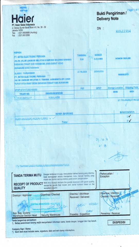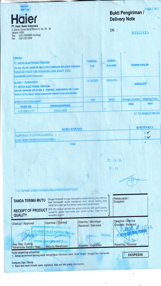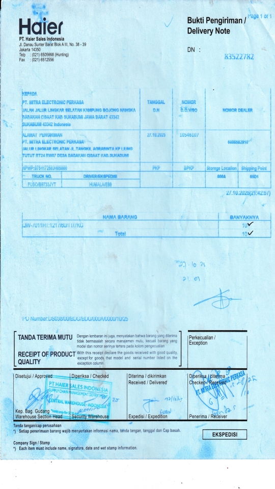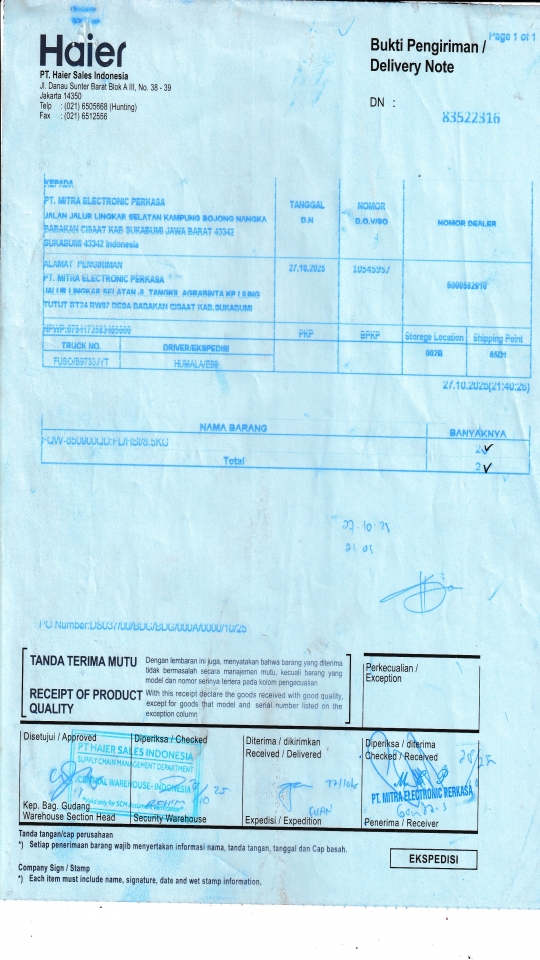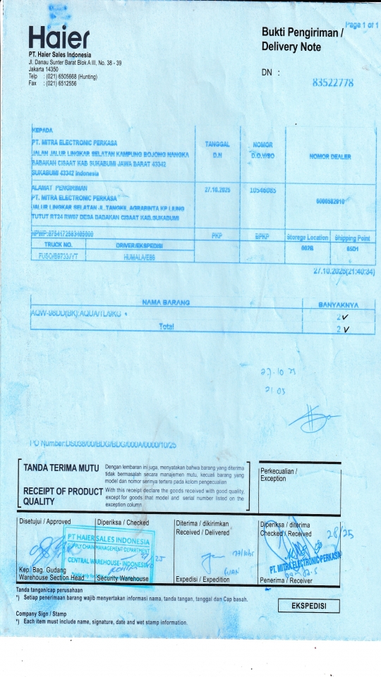 Penerima PT. MITRA ELECTRONIC PERKASA