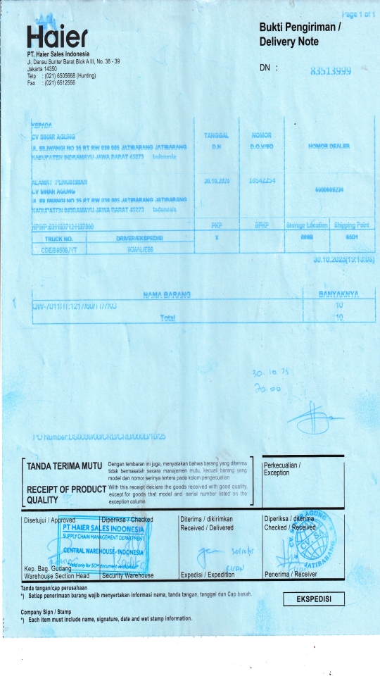 CV SINAR AGUNG JL SILIWANGI NO 35 RT RW 039 005 JATIBARANG JATIBARANG KABUPATEN INDRAMAYU JAWA BARAT 45273 ID |