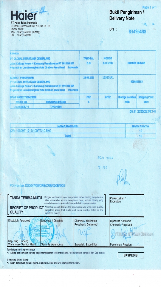 Penerima PT GLOBAL MITRATAMA CEMERLANG