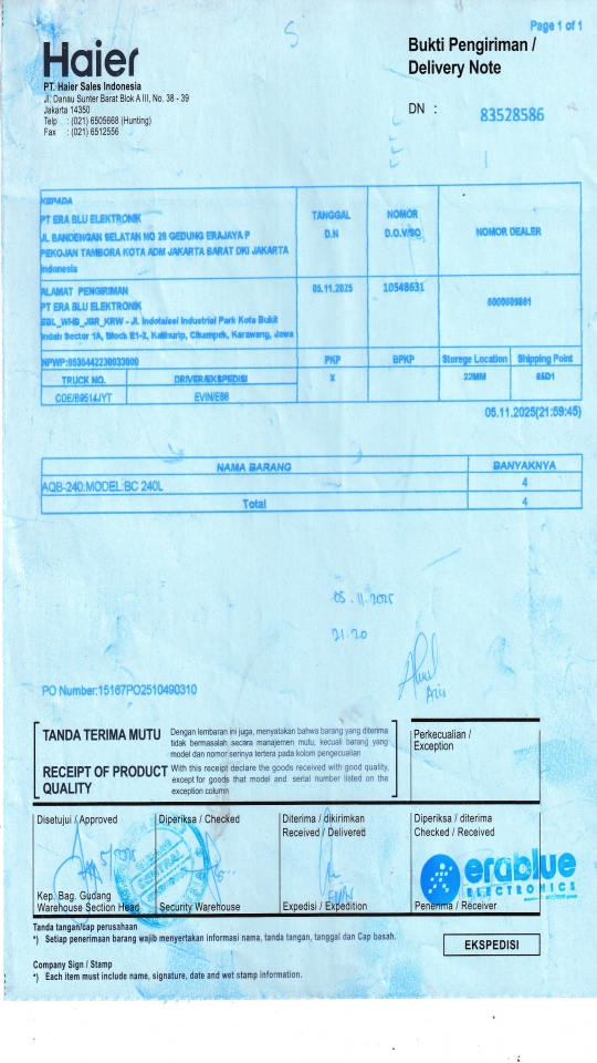Berangkat, Tiba, Bongkar 2025-11-06, 2025-11-06, 2025-11-06