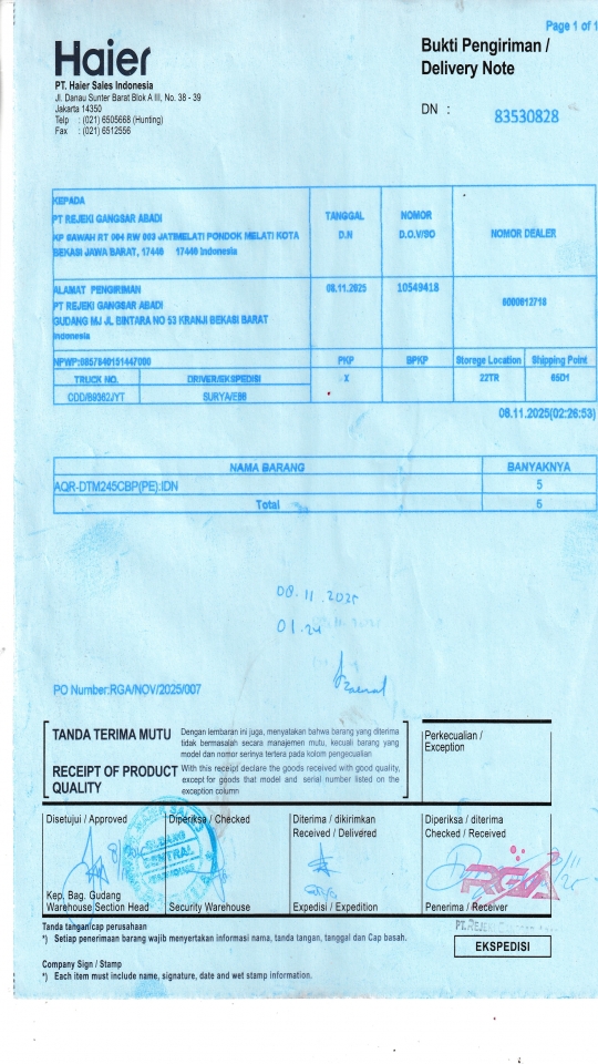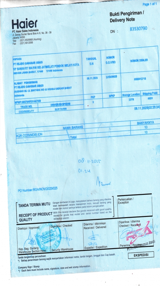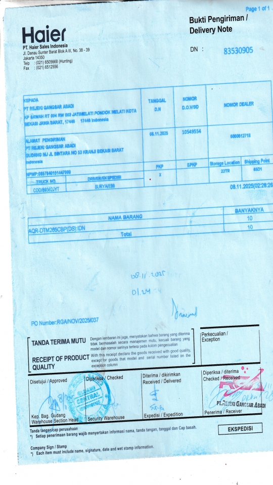 PT REJEKI GANGSAR ABADI GUDANG MJ JL BINTARA NO 53 KRANJI BEKASI BARAT ID |