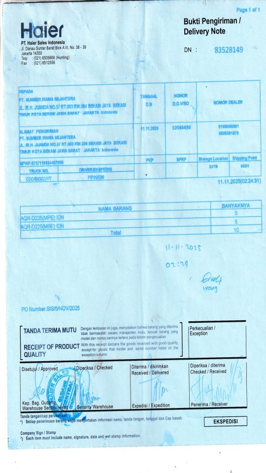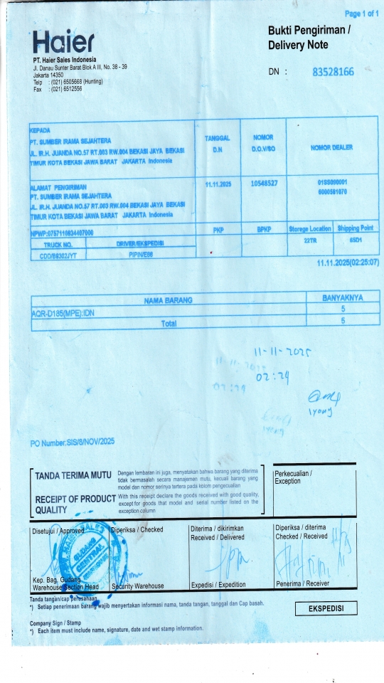 Berangkat, Tiba, Bongkar 2025-11-11, 2025-11-11, 2025-11-11