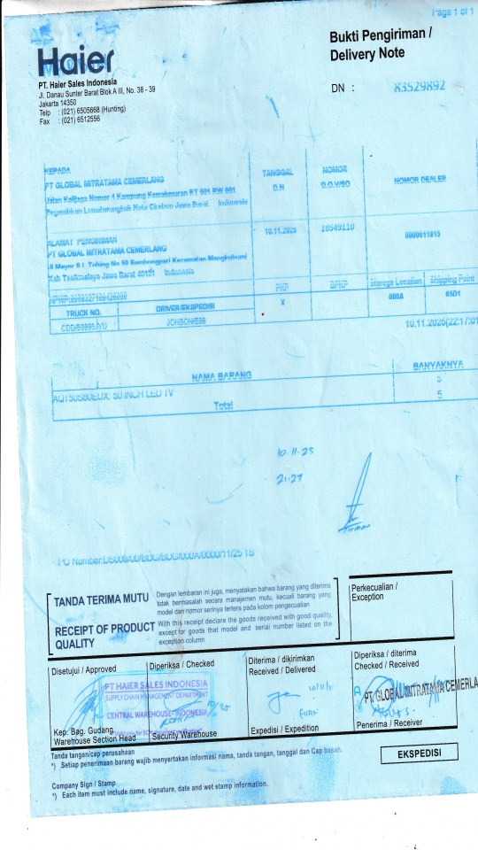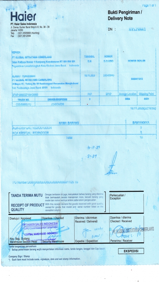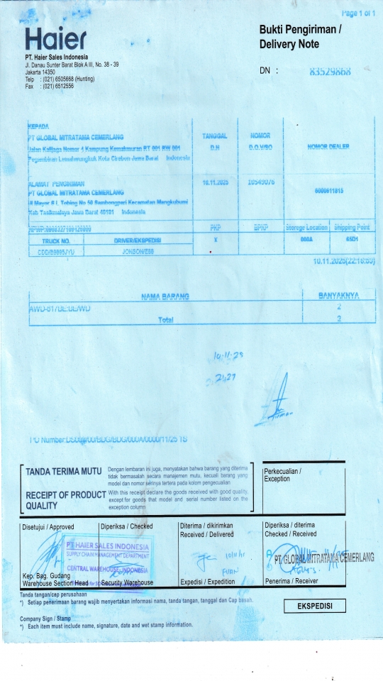 Penerima PT GLOBAL MITRATAMA CEMERLANG