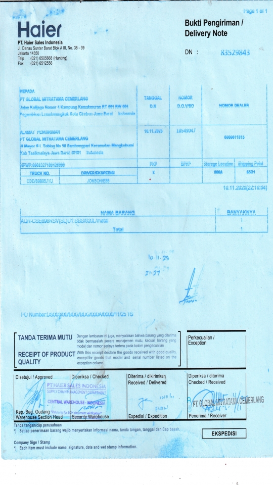 Berangkat, Tiba, Bongkar 2025-11-11, 2025-11-11, 2025-11-11