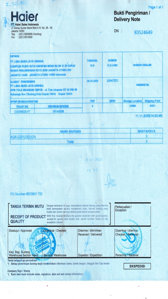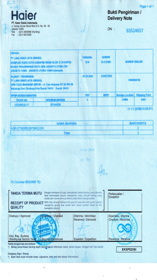 Customer PT. HAIER SALES INDONESIA