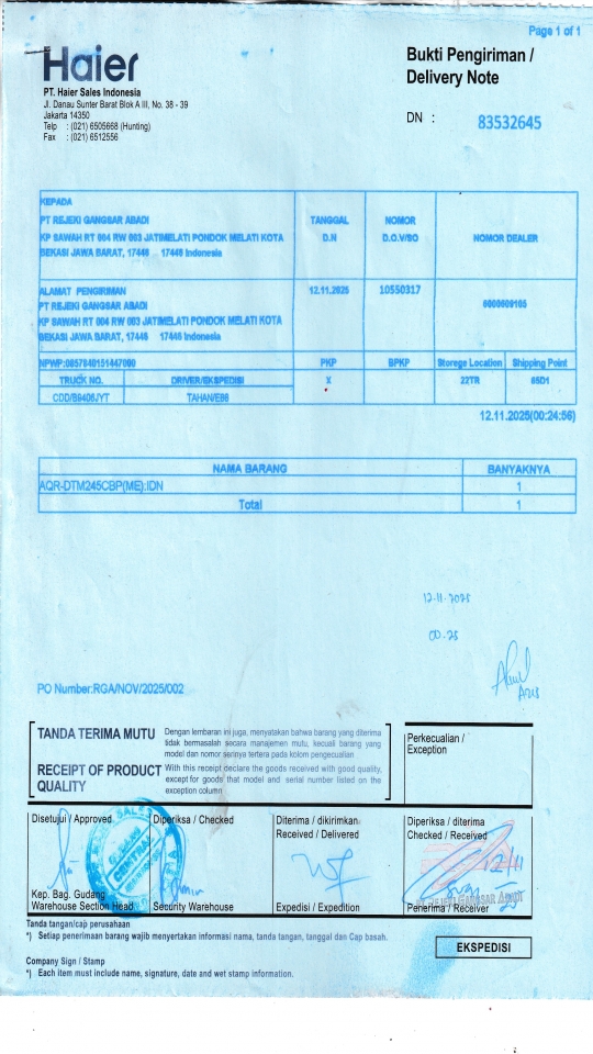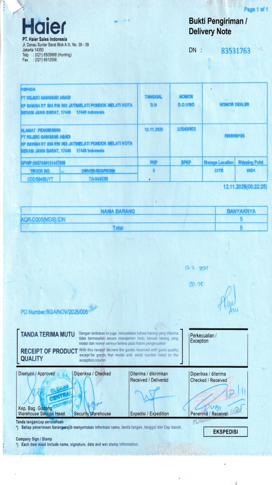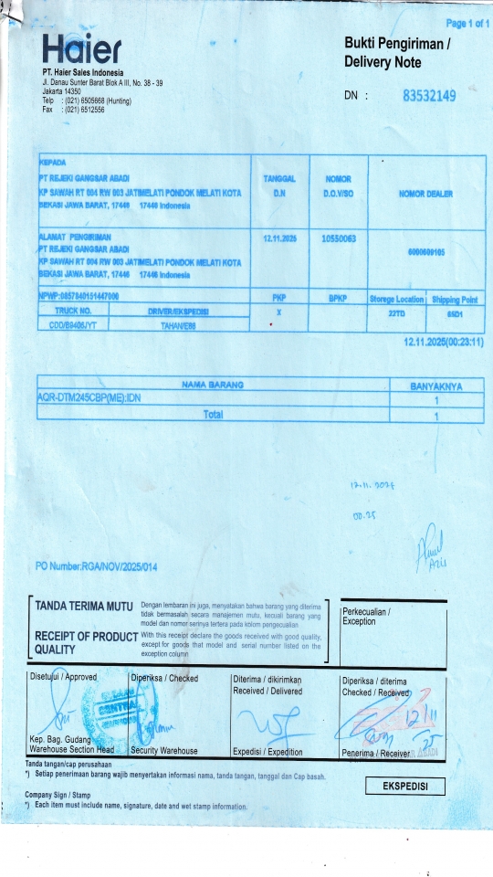 Berangkat, Tiba, Bongkar 2025-11-12, 2025-11-12, 2025-11-12