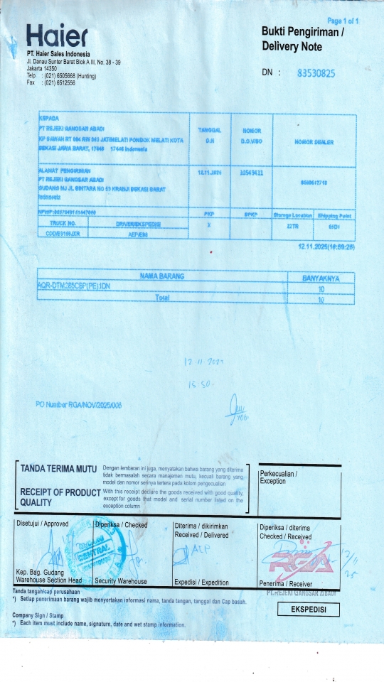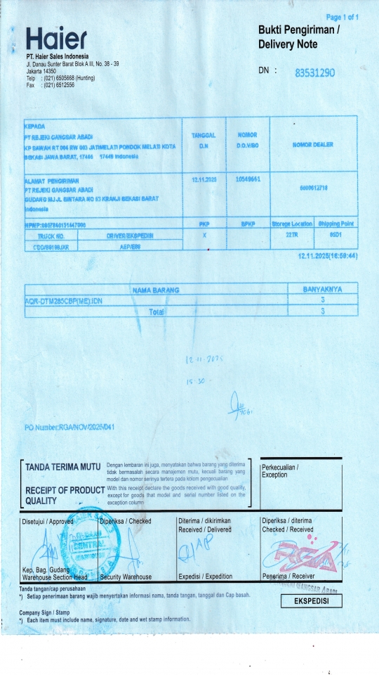 | Berangkat, Tiba, Bongkar | 2025-11-13, 2025-11-13, 2025-11-13 |