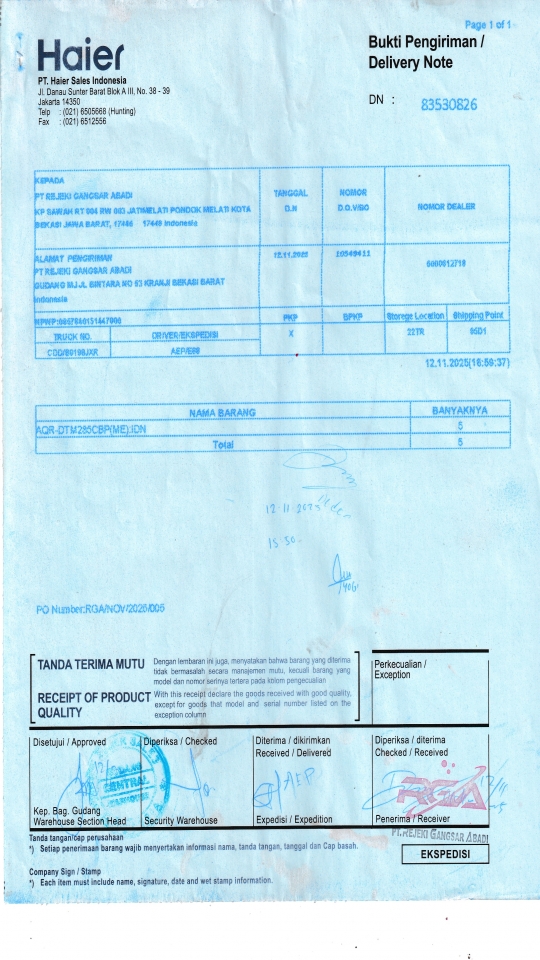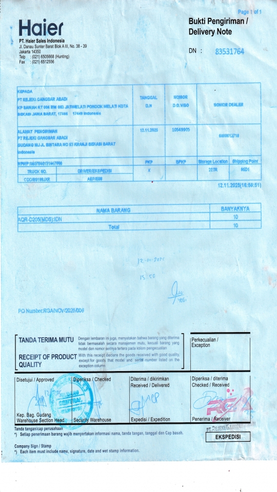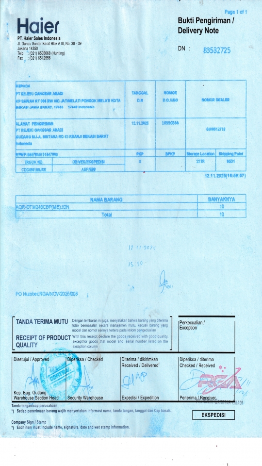 | Penerima | PT REJEKI GANGSAR ABADI |