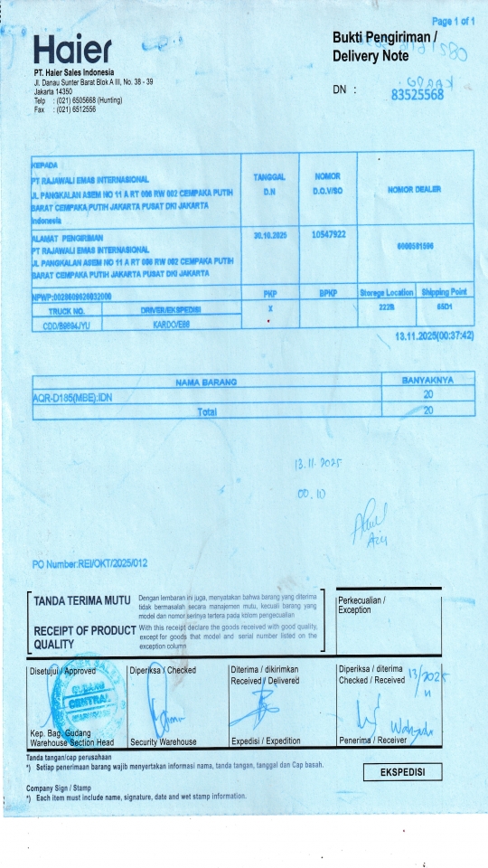 Berangkat, Tiba, Bongkar 2025-11-13, 2025-11-13, 2025-11-13