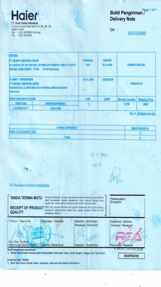 | Penerima | PT REJEKI GANGSAR ABADI |