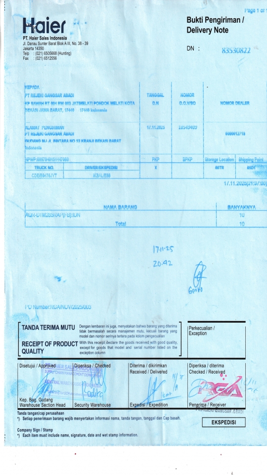 | Penerima | PT REJEKI GANGSAR ABADI |