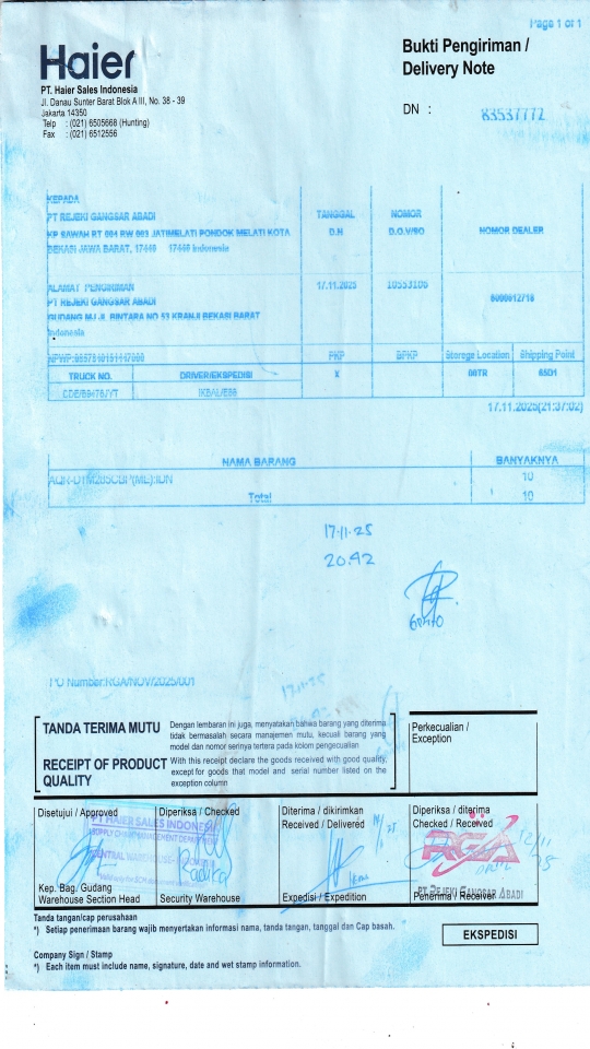 | Berangkat, Tiba, Bongkar | 2025-11-18, 2025-11-18, 2025-11-18 |