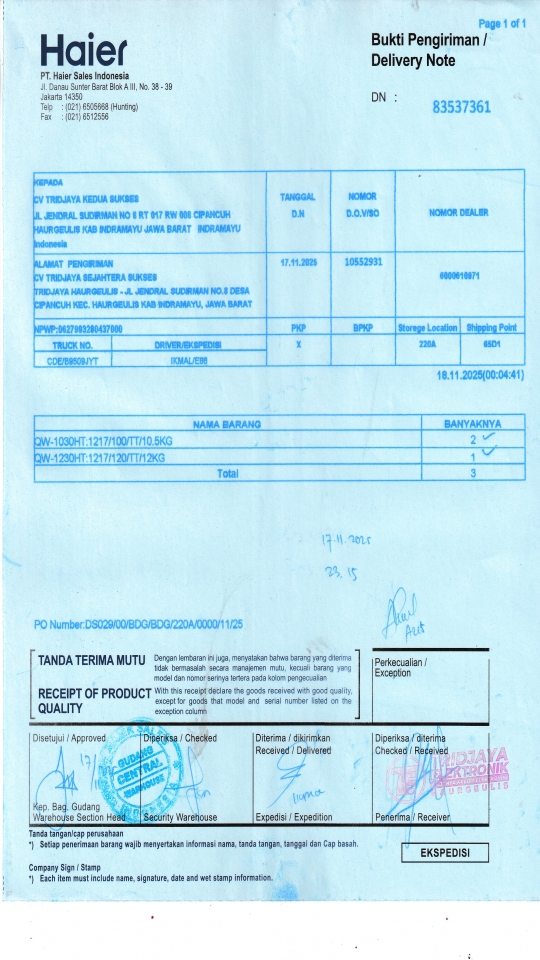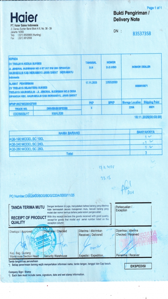 CV TRIDJAYA SEJAHTERA SUKSES TRIDJAYA HAURGEULIS - JL JENDRAL SUDIRMAN NO.8 DESA CIPANCUH KEC. HAURGEULIS KAB INDRAMAYU, JAWA BARAT Indramayu 45264 ID |