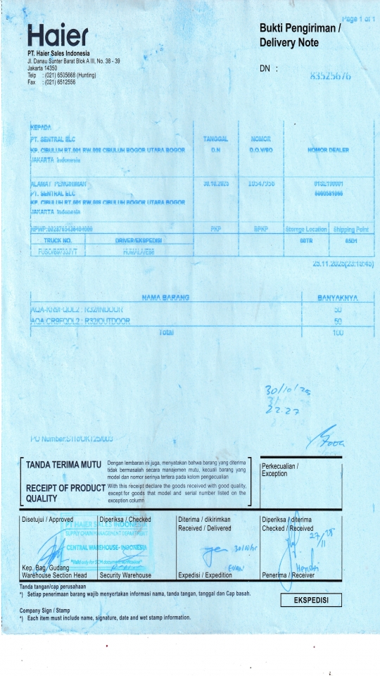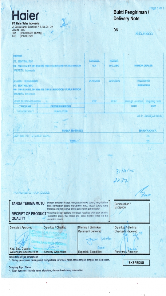 | Berangkat, Tiba, Bongkar | 2025-11-26, 2025-11-26, 2025-11-26 |