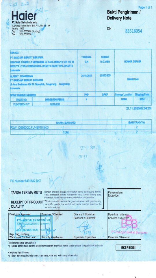 Customer PT. HAIER SALES INDONESIA