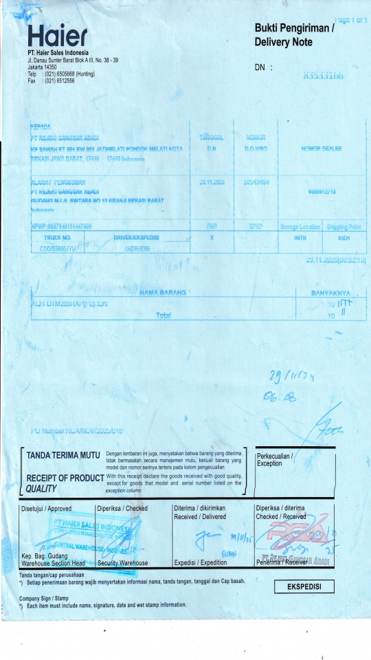 | Customer | PT. HAIER SALES INDONESIA |
