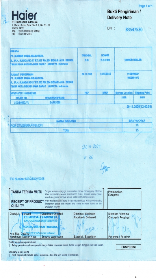 Berangkat, Tiba, Bongkar 2025-11-29, 2025-11-29, 2025-11-29
