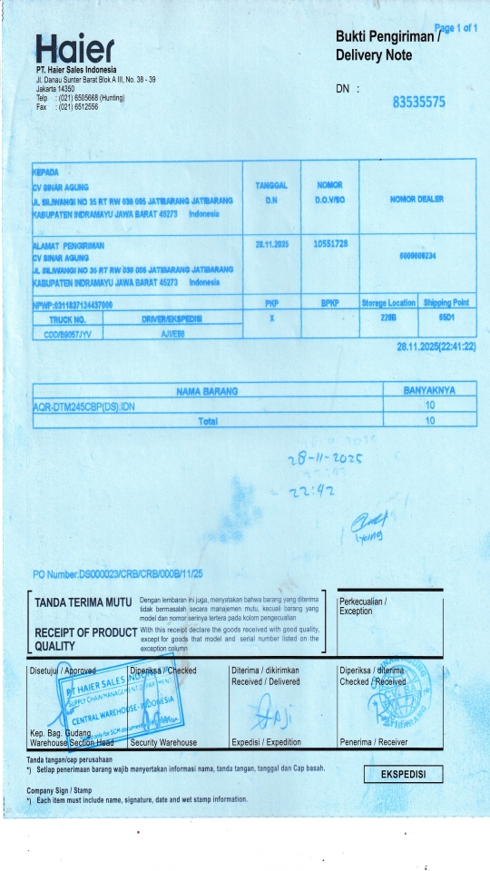 CV SINAR AGUNG JL SILIWANGI NO 35 RT RW 039 005 JATIBARANG JATIBARANG KABUPATEN INDRAMAYU JAWA BARAT 45273 ID |