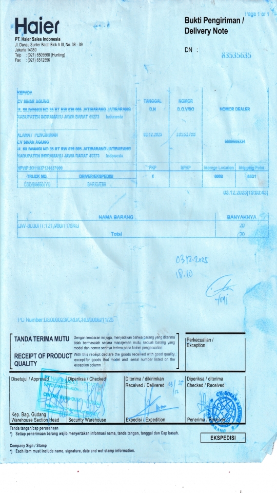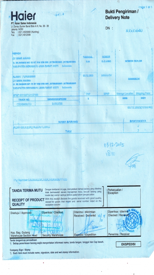 CV SINAR AGUNG JL SILIWANGI NO 35 RT RW 039 005 JATIBARANG JATIBARANG KABUPATEN INDRAMAYU JAWA BARAT 45273 ID |