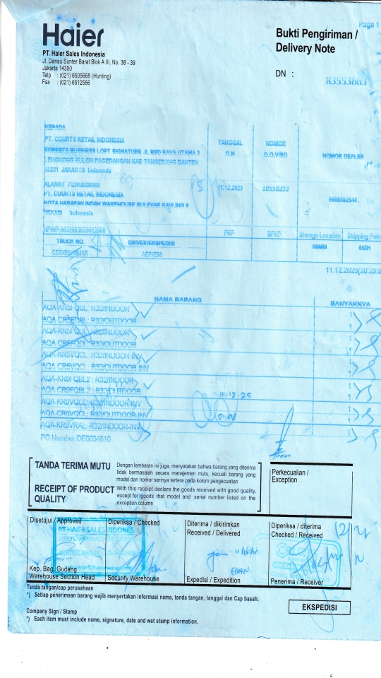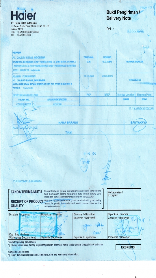 PT. COURTS RETAIL INDONESIA KOTA HARAPAN INDAH WAREHOUSE BULEVAR KAVLING 9 BEKASI ID |