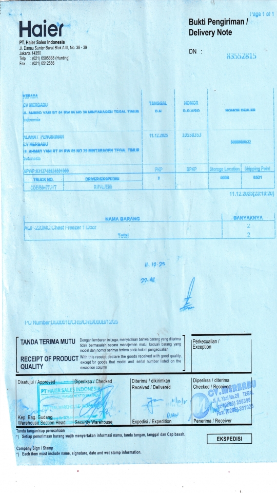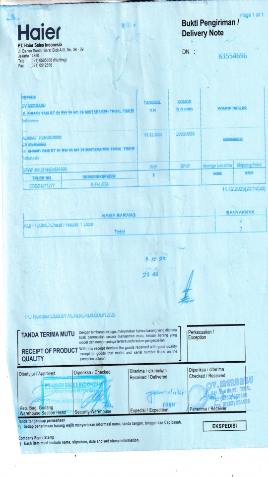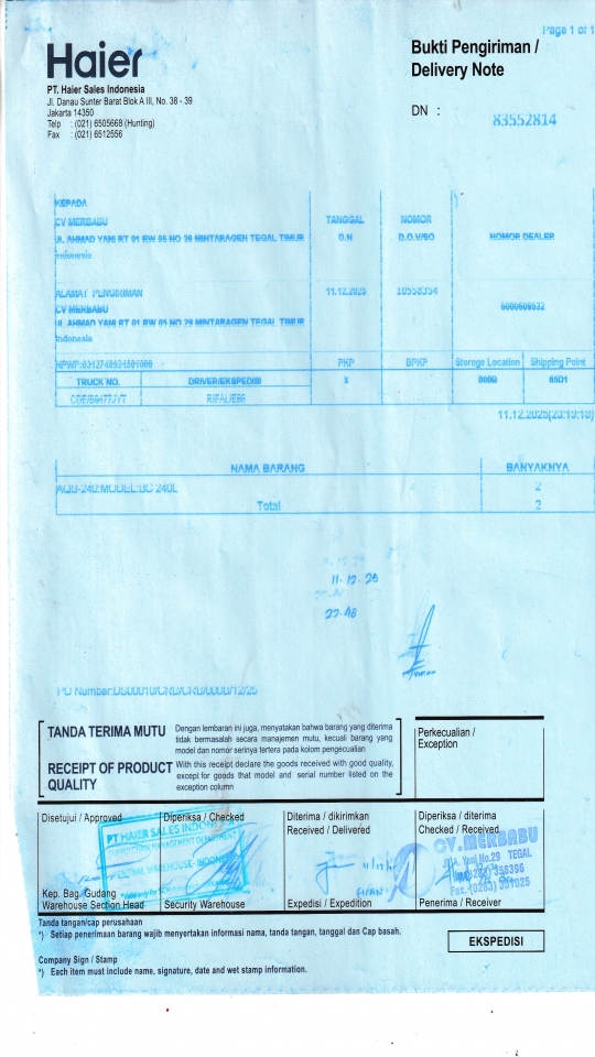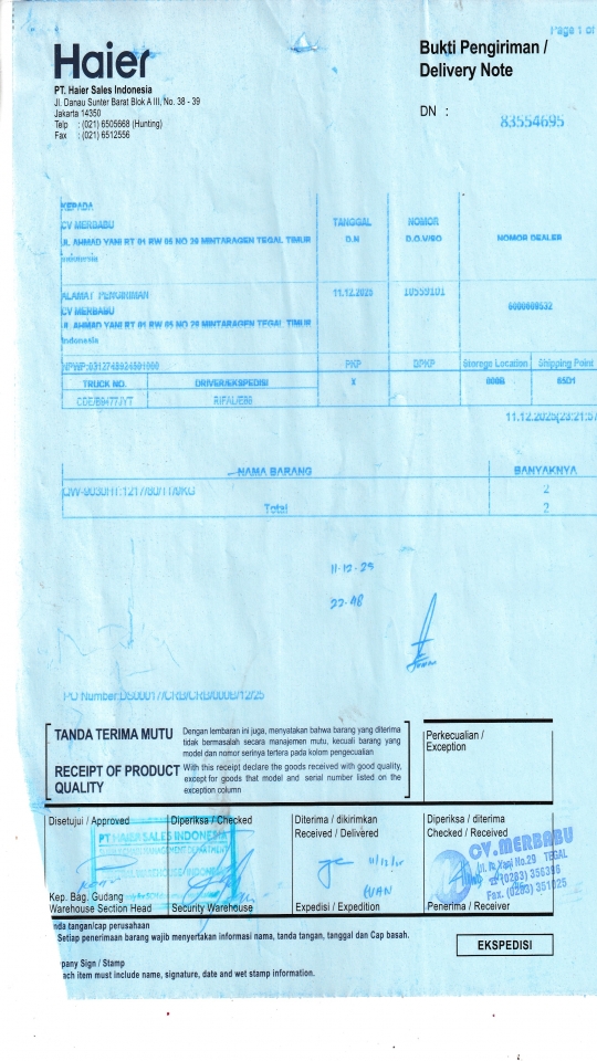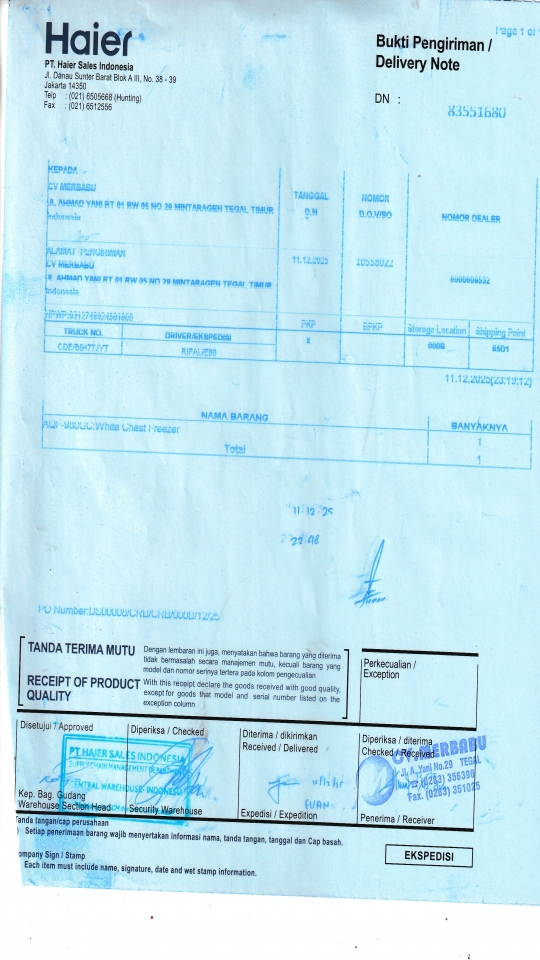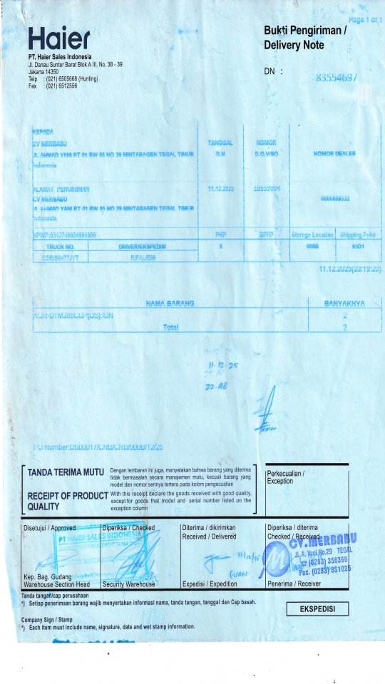 | Berangkat, Tiba, Bongkar | 2025-12-12, 2025-12-12, 2025-12-12 |