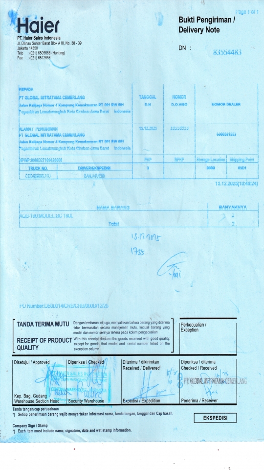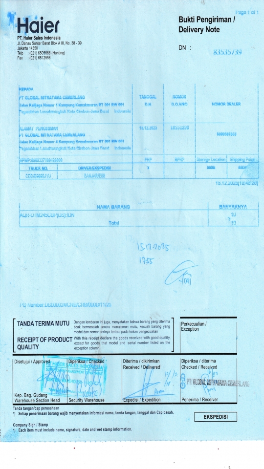 Penerima PT GLOBAL MITRATAMA CEMERLANG