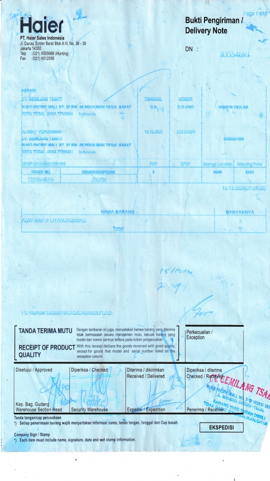 | Nama Driver | REJECKY P LUMBAN GAOL |