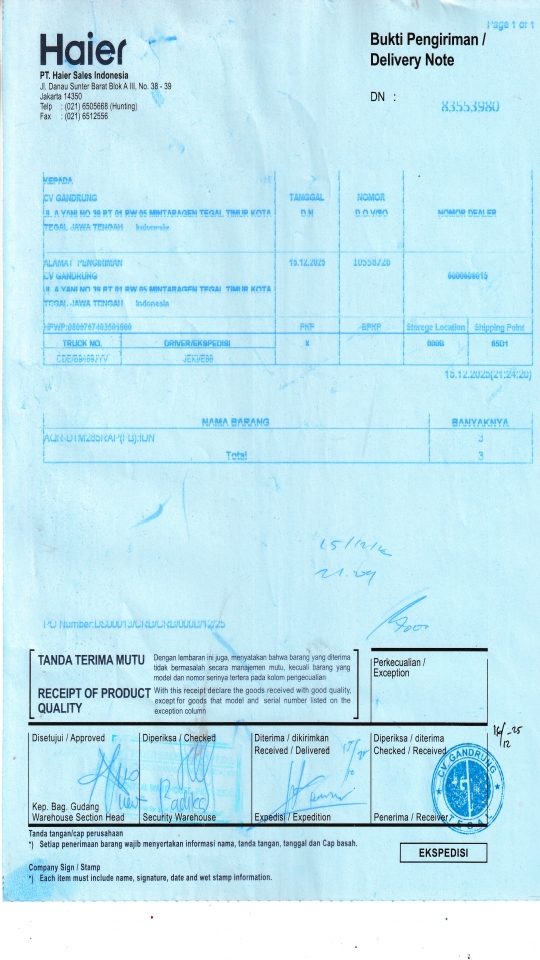 | Nama Driver | REJECKY P LUMBAN GAOL |