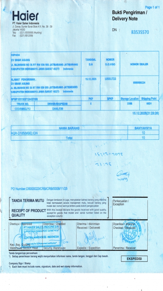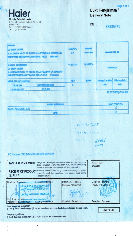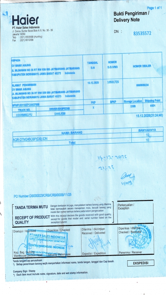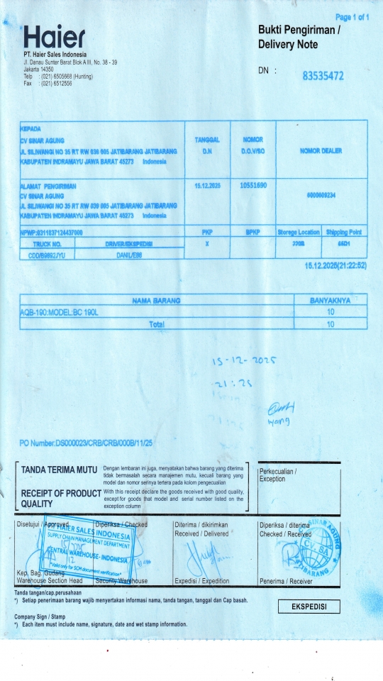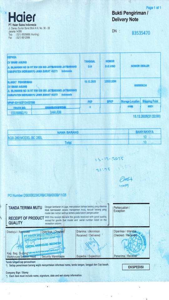 CV SINAR AGUNG JL SILIWANGI NO 35 RT RW 039 005 JATIBARANG JATIBARANG KABUPATEN INDRAMAYU JAWA BARAT 45273 ID |