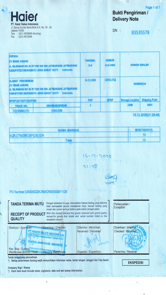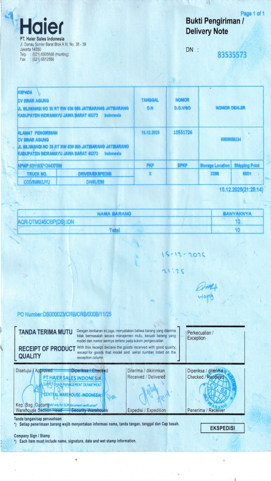 | No.Polisi | B 9894 JYU | CDD 6 |
