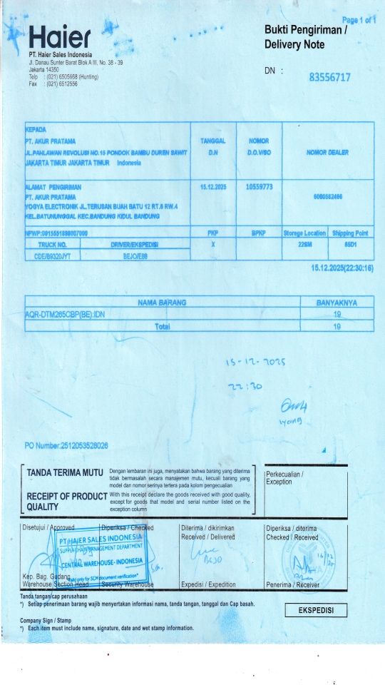 Berangkat, Tiba, Bongkar 2025-12-16, 2025-12-16, 2025-12-16
