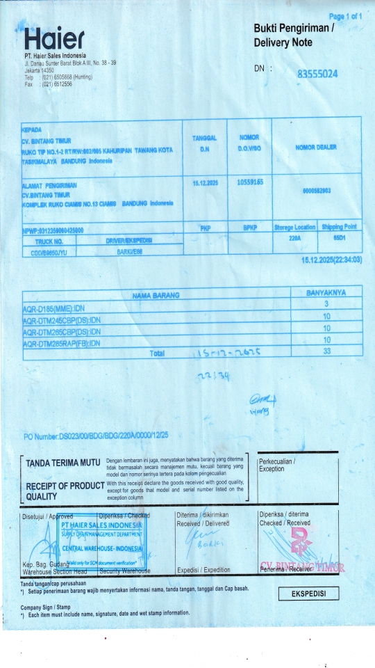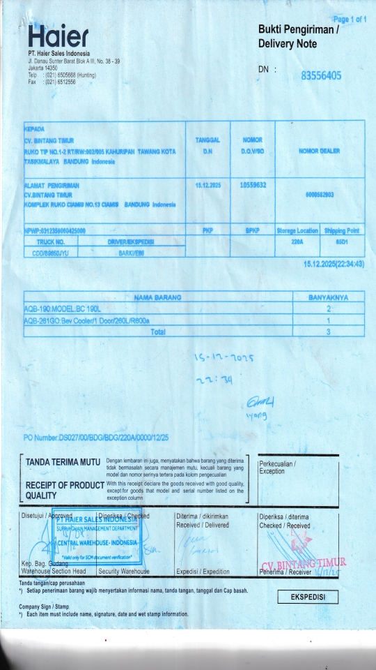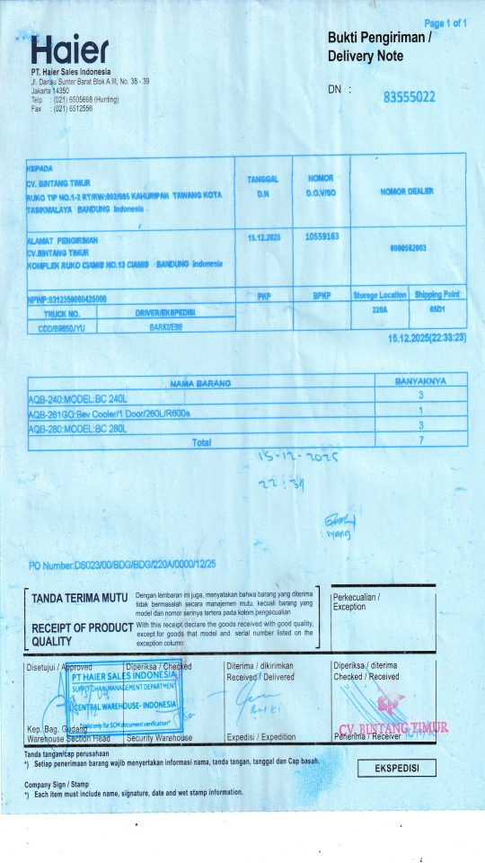 | Berangkat, Tiba, Bongkar | 2025-12-16, 2025-12-16, 2025-12-16 |