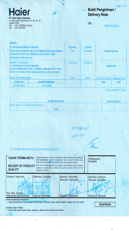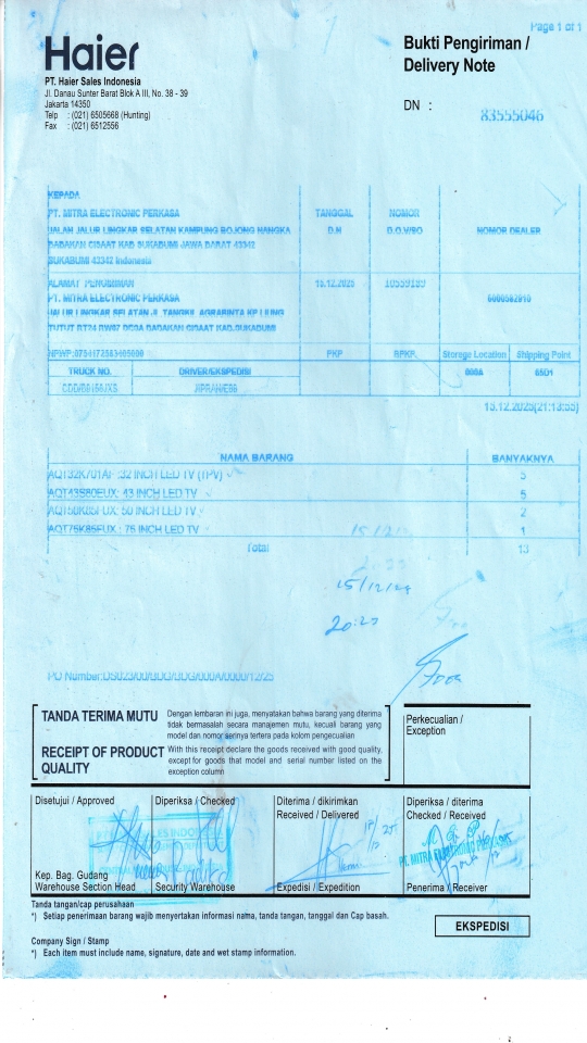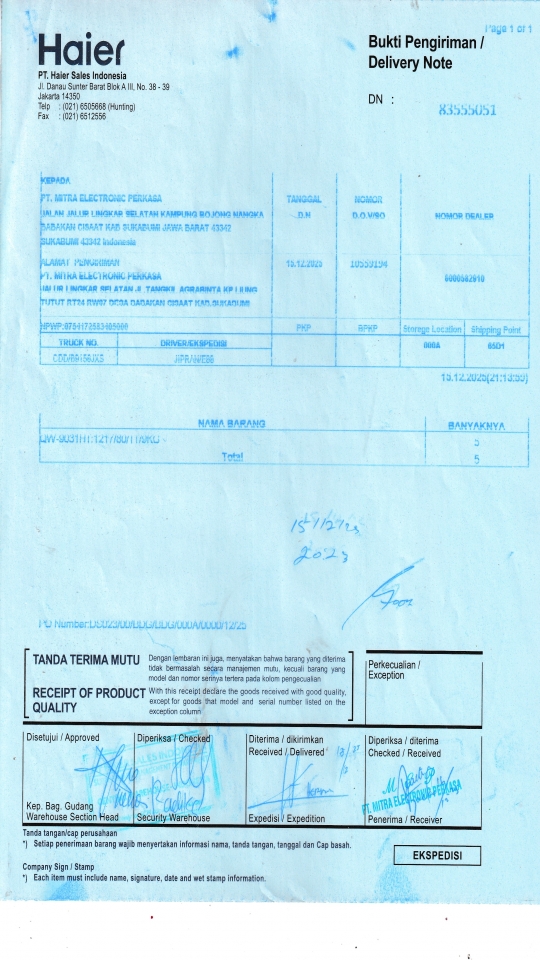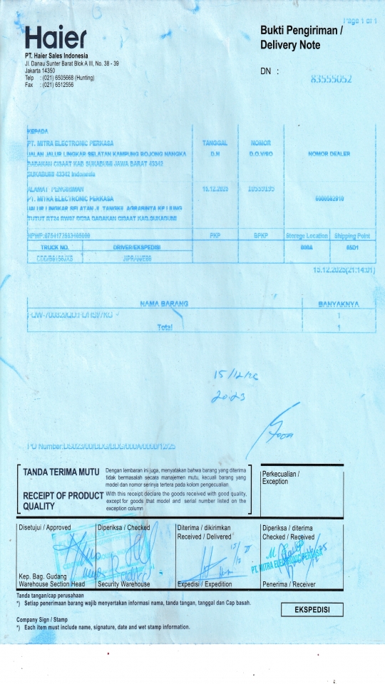 Penerima PT. MITRA ELECTRONIC PERKASA