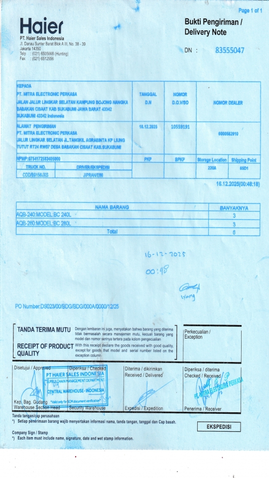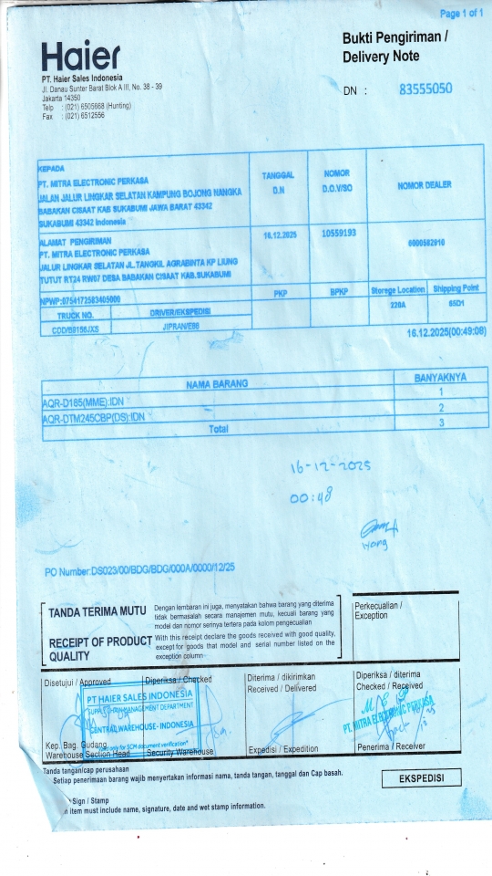 Berangkat, Tiba, Bongkar 2025-12-16, 2025-12-16, 2025-12-16
