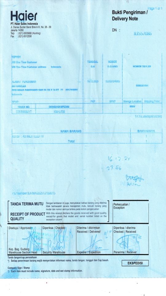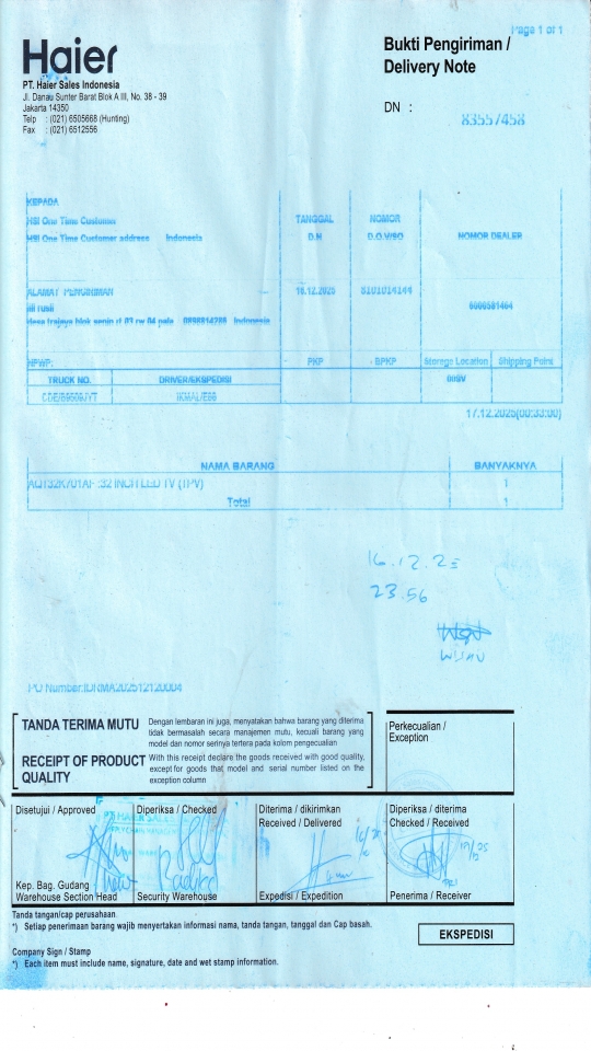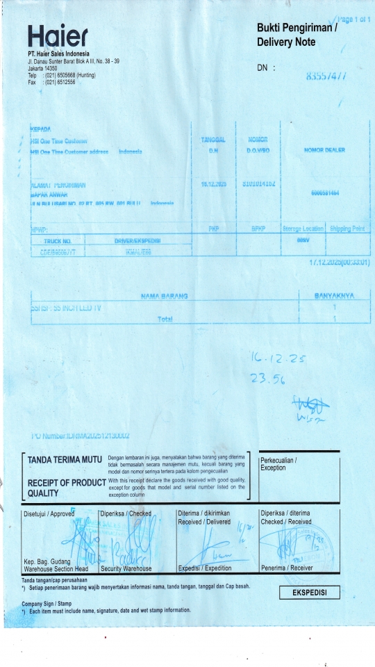 | Customer | PT. HAIER SALES INDONESIA |