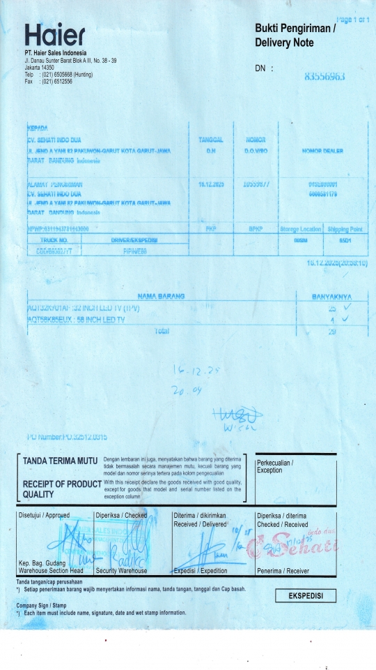 Penerima CV. SEHATI INDO DUA