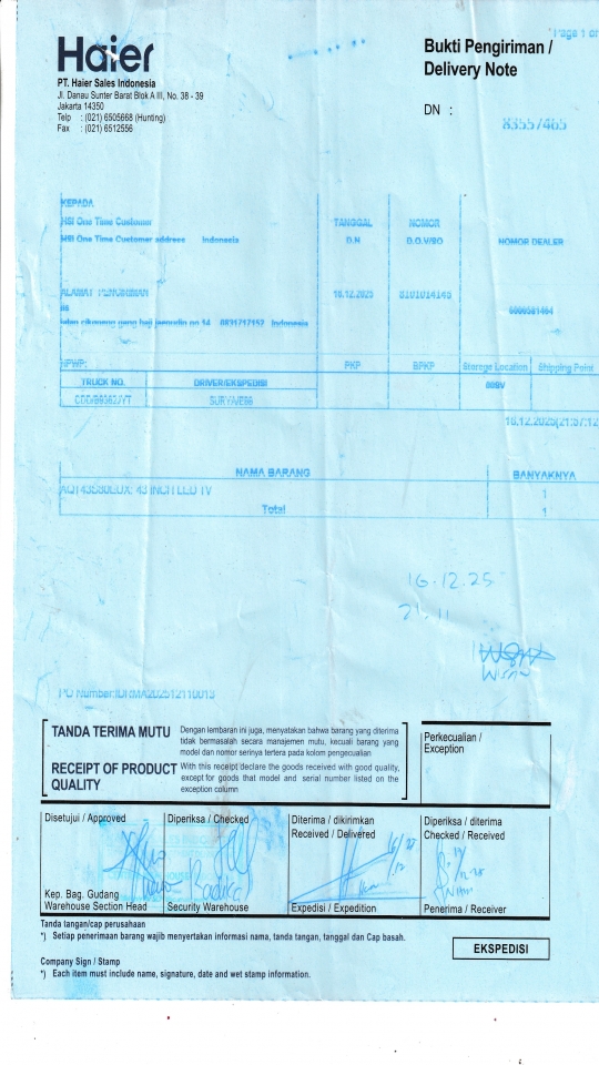 | Berangkat, Tiba, Bongkar | 2025-12-17, 2025-12-17, 2025-12-17 |