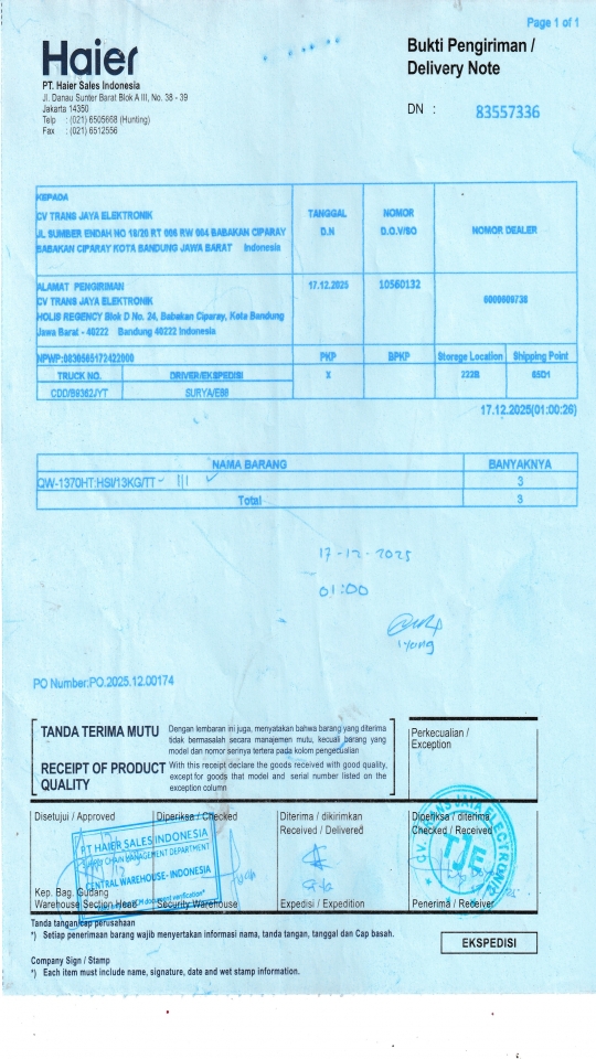 Berangkat, Tiba, Bongkar 2025-12-17, 2025-12-17, 2025-12-17