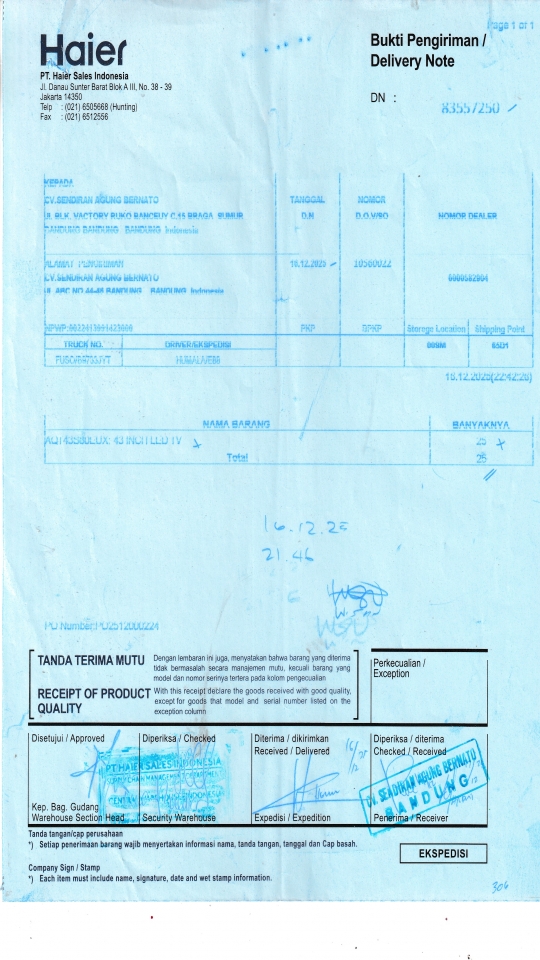 | Customer | PT. HAIER SALES INDONESIA |