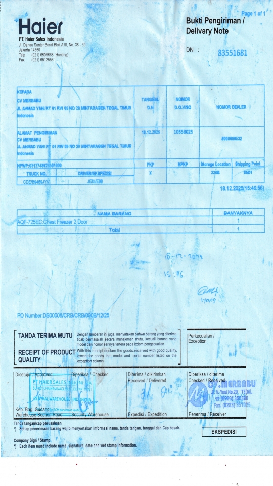 | Berangkat, Tiba, Bongkar | 2025-12-18, 2025-12-18, 2025-12-18 |
