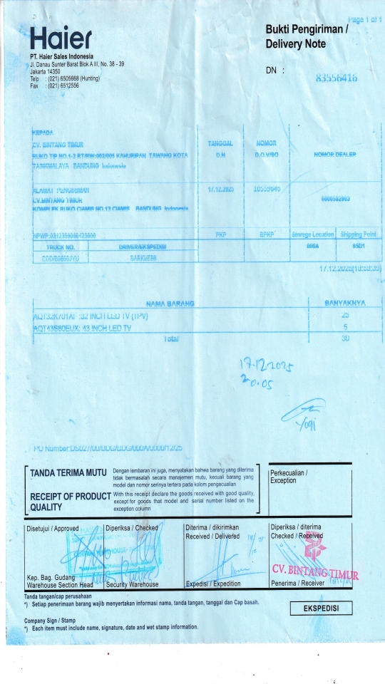 | Customer | PT. HAIER SALES INDONESIA |