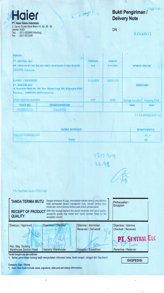 PT. SENTRAL ELC Jl. Soekarno Hatta No. 341, Kec. Kebon Lega, Kel. Bojongloa Kidul, Bandung BANDUNG 40235 ID |