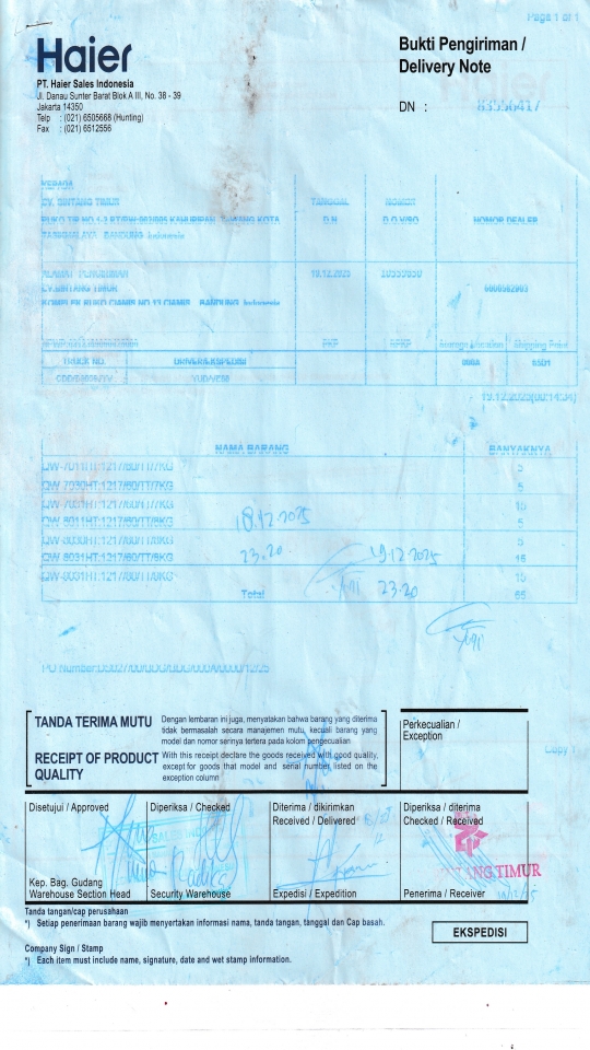 | Customer | PT. HAIER SALES INDONESIA |